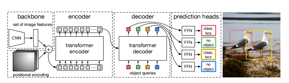 我们在找到最优映射\(\hat{\sigma}\)之后,可以计算匈牙利损失,让一一匹配上的框的位置、和预测类别损失最小