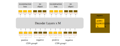 DN的去噪训练里面引入的噪声样本都是正样本来进行学习,然而模型不仅需要学习到如何回归出正样本,还需要意识到如何区分负样本。例如,DINO的decoder中用了900个query,而一张图中一般只会有几个物体,因此绝大部分都负样本。