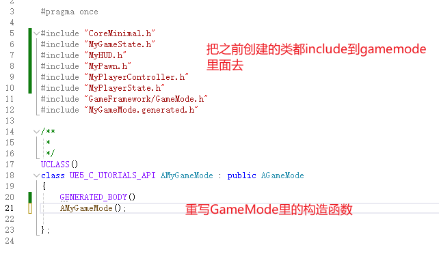 #include “GameFramework/GameModeBase.h”:包含了一些GameMode的头文件