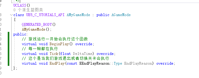 #include “MyGameModeBase.generated.h”:存储反射数据